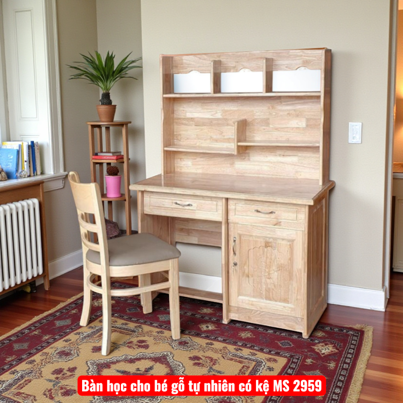Khi tìm kiếm bàn học cho bé bằng gỗ, phụ huynh luôn mong muốn một sản phẩm vừa bền, vừa an toàn, vừa giúp bé tập trung học tập. Bộ sản phẩm Bàn học cho bé gỗ tự nhiên có kệ MS 2959 chính là giải pháp hoàn hảo: được làm từ gỗ cao su tự nhiên, tích hợp kệ sách thông minh – mang đến không gian học tập lý tưởng cho bé ở nhà.