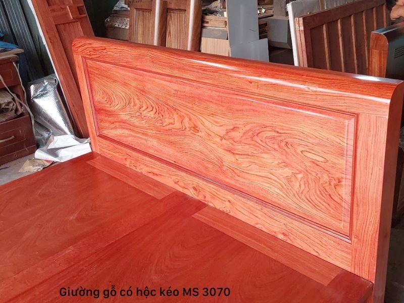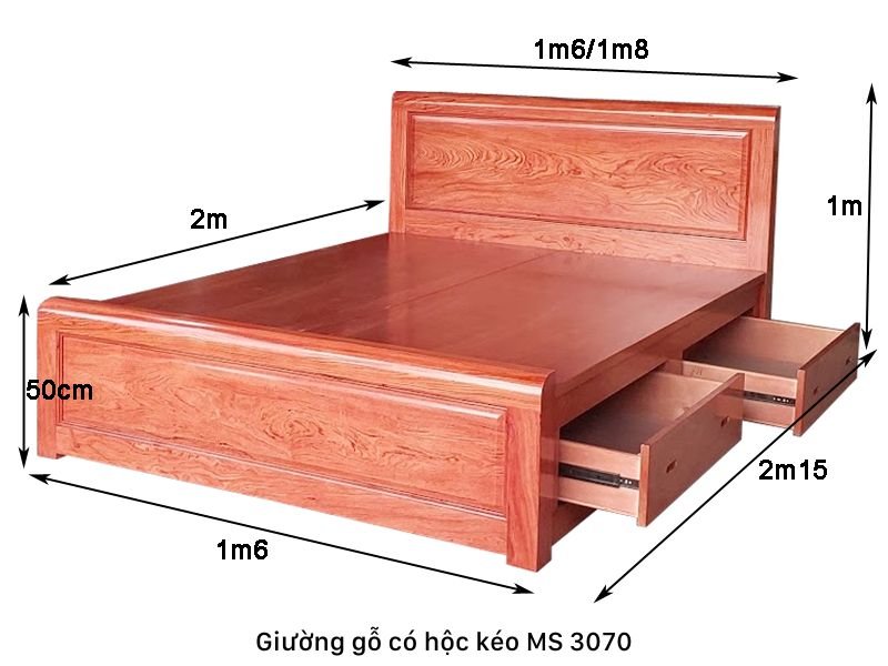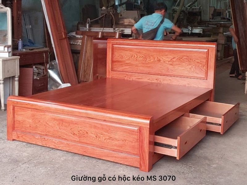Giường có hộc kéo gỗ tự nhiên vân hương đá MS 3070