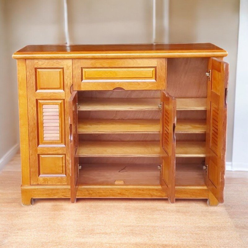 Được làm từ gỗ xoan đào tự nhiên 100%, chiếc tủ này có độ bền cao, chống mối mọt và cong vênh. Vân gỗ đẹp mắt cùng màu sắc tự nhiên tạo nên vẻ sang trọng, ấm cúng cho căn phòng của bạn. Với thiết kế thông minh, tủ có nhiều ngăn chứa rộng rãi giúp bạn sắp xếp gọn gàng tất cả các loại giày, dép của gia đình.