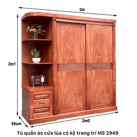 Tủ quần áo cửa lùa có kệ trang trí MS 2949