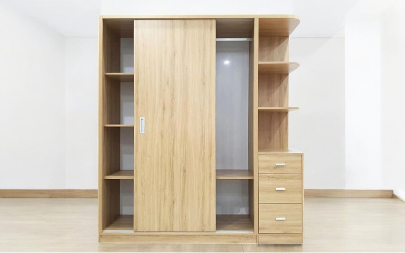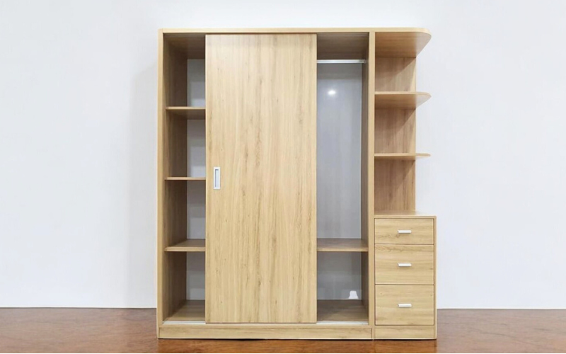 Tủ quần áo cửa kéo được làm từ gỗ công nghiệp Melamine chống trầy xước cao cấp, bền bỉ và dễ dàng vệ sinh. Bạn có thể lựa chọn màu sắc vân gỗ tự nhiên hoặc màu tùy chỉnh phù hợp với phong cách nội thất.