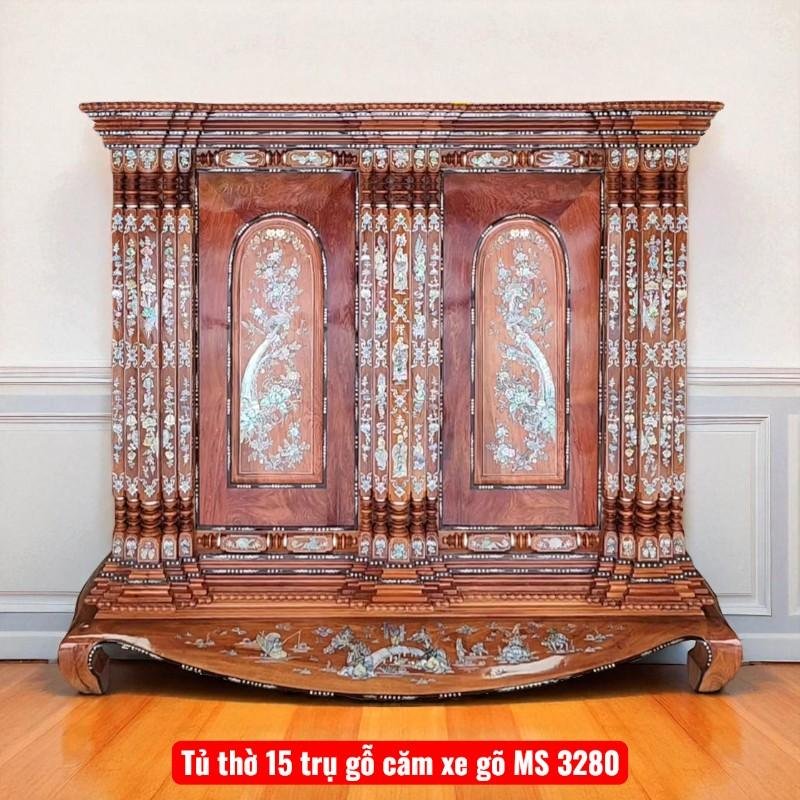 Kết luận: Tủ thờ 15 trụ gỗ căm xe gõ không chỉ là nơi thờ cúng mà còn là một tác phẩm nghệ thuật, là biểu tượng của sự tôn kính và đẳng cấp. Hãy đầu tư vào sản phẩm này để không gian thờ cúng của gia đình bạn thêm phần trang trọng và ý nghĩa.